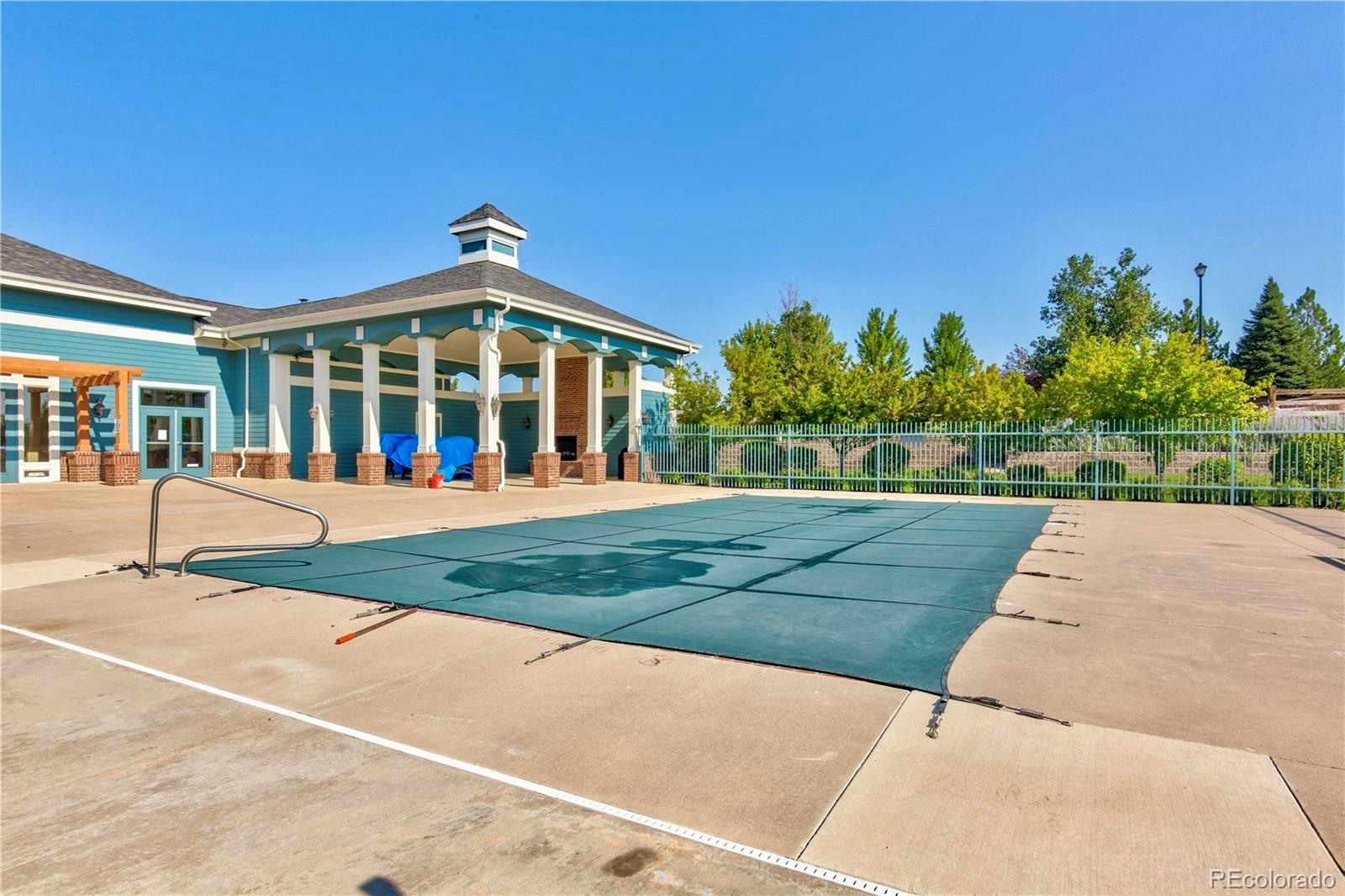 This rare ground-floor corner unit offers exceptional comfort, privacy, and convenience in one spacious 2-bedroom, 2-bath layout. With bedrooms strategically placed on opposite ends, this home ensures peaceful separation from work, guests, or family--and even offers the flexibility to rent out the additional room for extra income. The updated kitchen features 42" cabinets, granite countertops, a central island, and a pantry--perfect for cooking, gathering, or entertaining. The dedicated dining space opens to a covered patio, blending indoor-outdoor living for year-round enjoyment. Hardwood floors, high 9' ceilings, and abundant natural light from extra corner-unit windows with elegant shutters elevate the airy, welcoming vibe. Storage is plentiful with walk-in closets in both bedrooms, an in-unit laundry area with washer and dryer included, and smart layout details with storage and linen closets throughout. The spacious primary suite includes an en suite bath with a relaxing soaking tub and shower combo. Just steps from your door, the detached one-car garage adds daily convenience, and plenty of guest parking is close by. Thoughtfully designed with accessibility in mind, an exterior ramp leads directly to your front door. Enjoy low HOA dues that include water, trash, exterior maintenance, and access to community amenities such as a pool, gym, and clubhouse. Ideally located near parks, trails, the Plains Conservation Center, and E-470 for a quick trip to DIA. Plus, you're just 2 miles from local restaurants and breweries and only 12 minutes from the shops and dining at Southlands--making it easy to enjoy the best of the area. Also close by is the one-of-a-kind Central Recreation Center, a 55,000-square-foot facility offering a lap pool, wave pool, interactive water slide, indoor track, brand-new fitness equipment, group exercise studios, teaching kitchens, party rooms, and more--bringing wellness and community right to your doorstep.